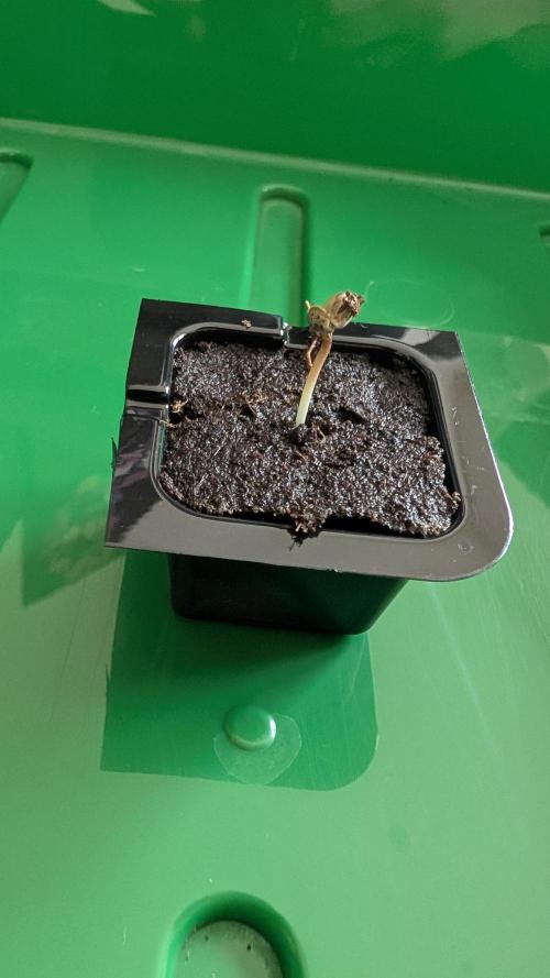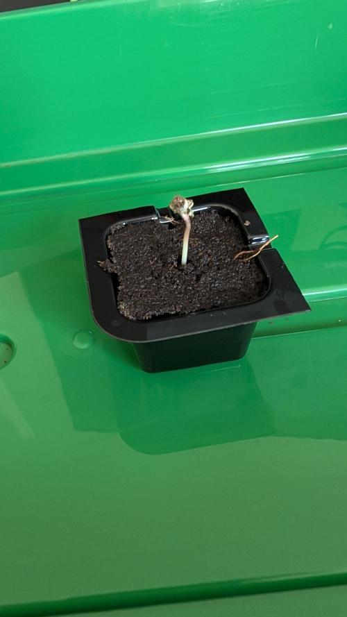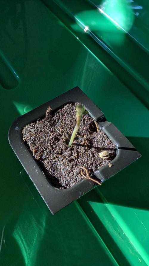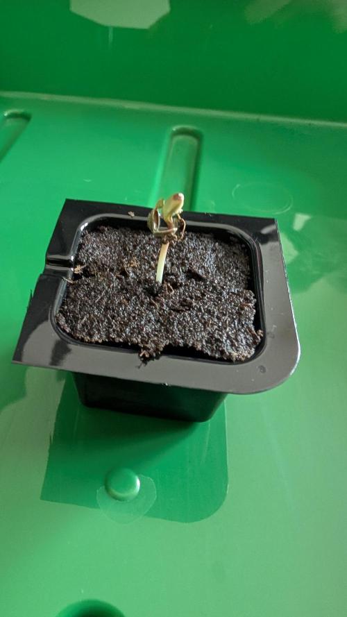 mindful_tree Samen im Wasserglas gezogen, dann 4 Tage vergessen :D Anschließend im Eazyplug eingesetzt und feucht gehalten. Kernhülle hatte sich ungünstig um die Blätter gelegt und Membran löste sich nicht. Mit Pinzette nachgeholfen.