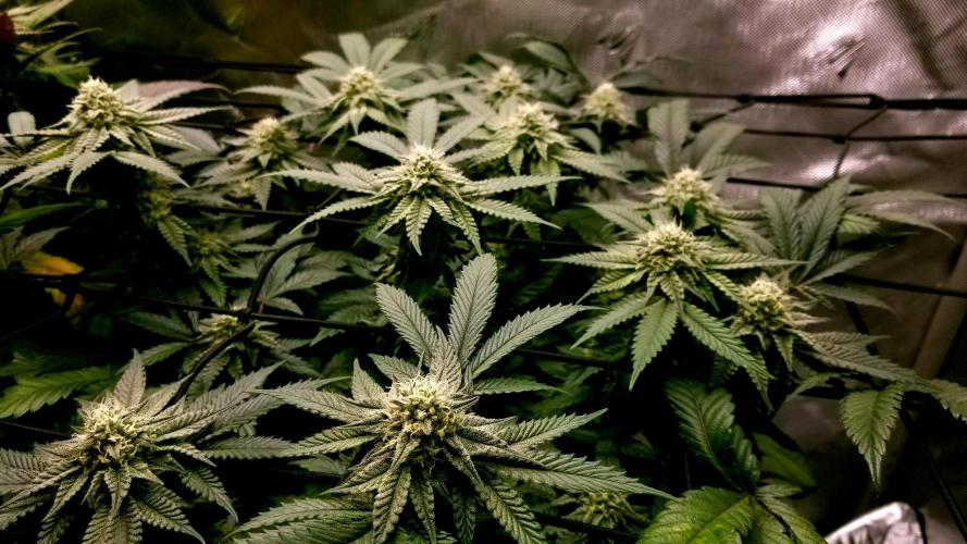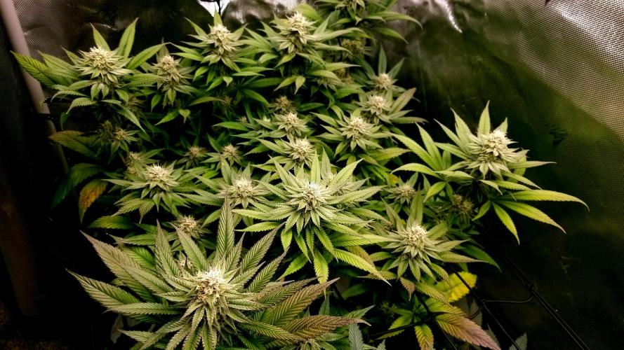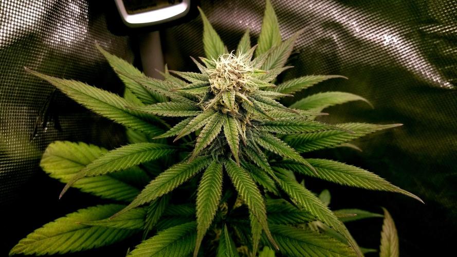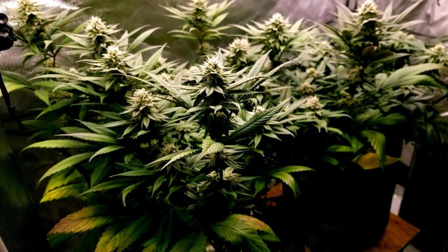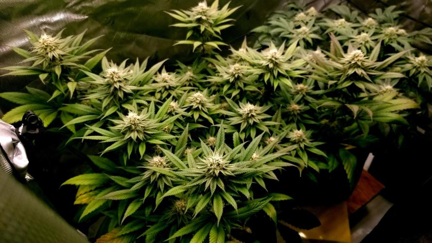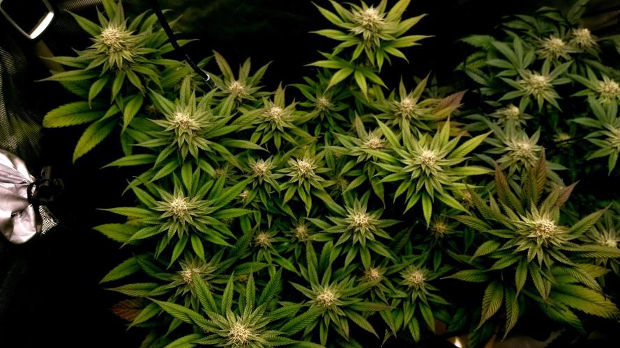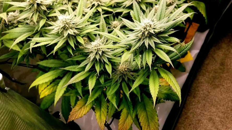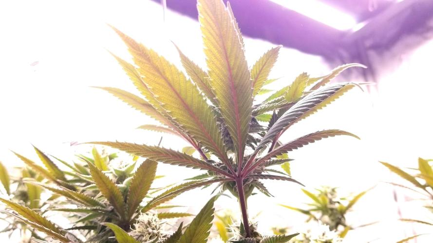 Grandmas_Boy Not sure if I'm gonna post a full diary of this, but I HAD to post these pics of her. Literally the most beautiful plant I have EVER grown. She's gorgeous!!! The undersides of the leaves have turned a beautiful pinkish purple hue, and she has red and yellow and purple starting to show on her lower leaves. As far as the strain goes, I got 3 free seeds from Elev8 when I ordered the Apple Candy last year, and decided to let them be the maiden voyage in my new 2x4. All 3 started off strong, though #3 was pretty stressed out even though the other two were extremely happy. Went to flower and everything seemed fine, until I found THEM. Footballs. Only on #3. I kind of expected it to happen, she never shook her stress, despite being in a near perfect environment. I assume she had some form of root issue that she never got over. Culled her and reset the other two to fill the space. The next week however, found footballs on both #1 and #2. Did some digging and reading... According to reddit, Elev8 is known for herms... but according to reddit everyone is the devil and the only seeds you can trust are obscure breeders that I've never heard of before. Did some more reading and watched videos from people in the industry, and learned that no matter what....ANY feminized seed CAN go herm. Its a bit of a numbers game and the majority of the time, if its not from environmental stress, you can just knock the footballs off and keep the plant and everything will be OK. So that's what I did, and saved both of them. #1 is the plant in the pictures, and #2 is way chunkier, but not as photogenic in my opinion. Both are really frosty. and both smell of ripe fruit, candy, and gas. I'm really looking forward to seeing how they turn out.