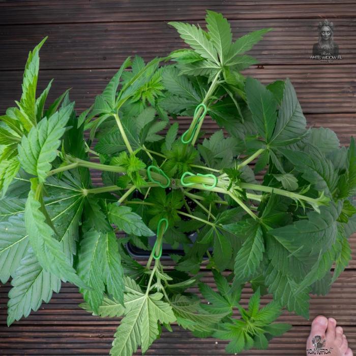 tony_kiffton Sie reagiert gut auf das Supercropping und richtet sich nach 2-3 Tager immer wieder auf und bildet immer wieder neue Triebe, die ans Licht gelangen ...