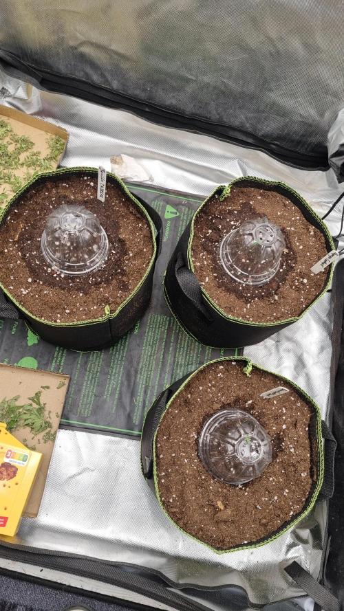 Growzilla1377 Im Torfjiffy quellen lassen. Getränkt mit Alpha Boost 2ml/l und Rootjuice. Sobald gekeimt setzte ich den kompletten Jiffy in dem Endtopf mit dem vorgemischten Substrat, gedüngt mit Greenhouse Feeding Bio Grow 3gr/l Substrat. Dann in der mitte des Topfes eine 10×10 cm Pufferzone aus reinem Light-Mix und da rein der Jiffy.