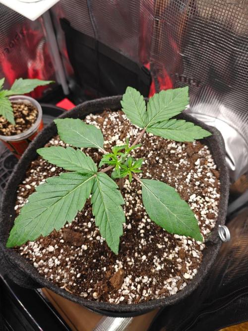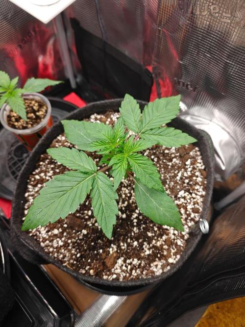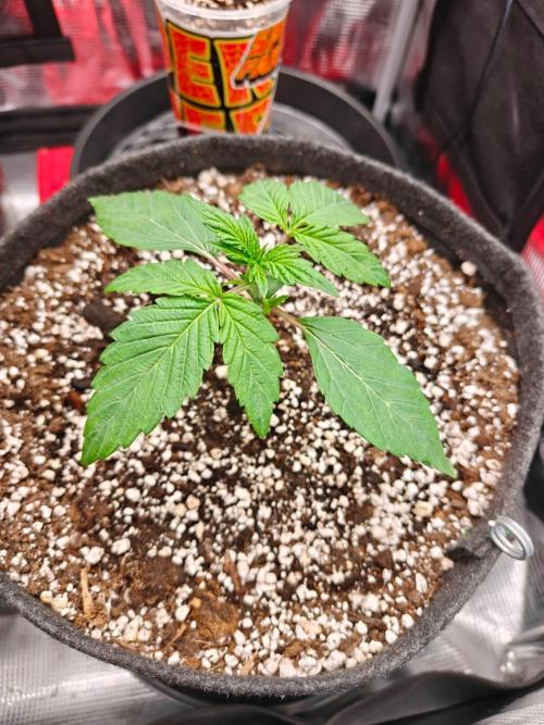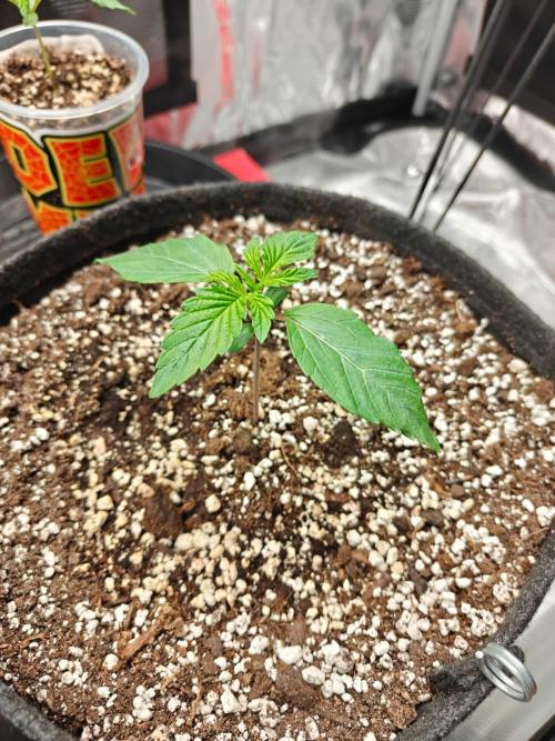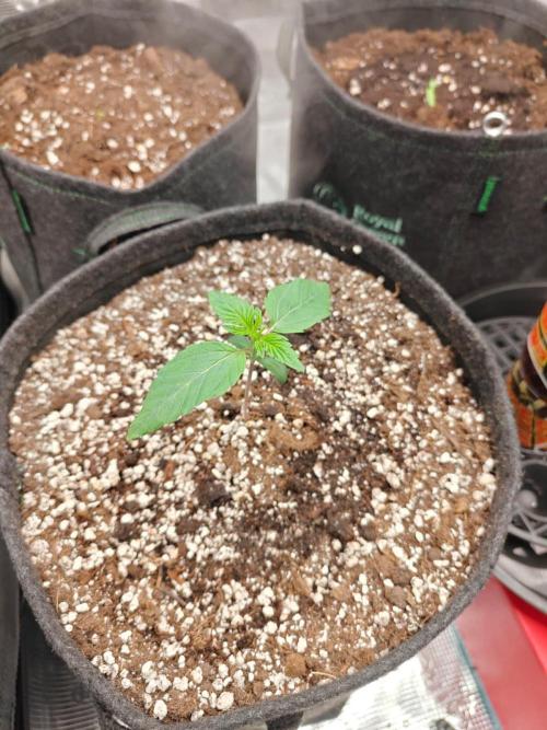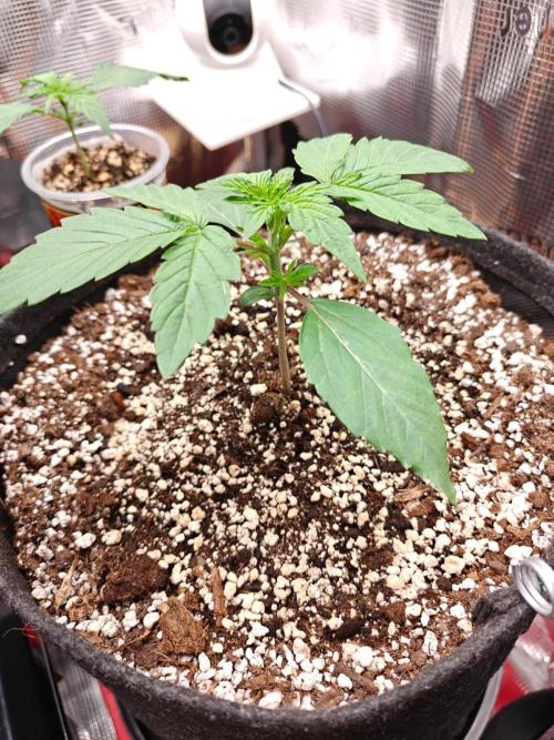 I will start counting today as day one. her cotleydon leaves were fully spread open this morning and I moved the coco plug into the 11l pot in the grow tent. Also watered her in with about 80ml's of water containing the same nutrients as the plug was soaked in.