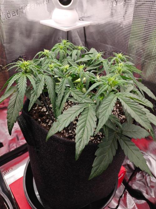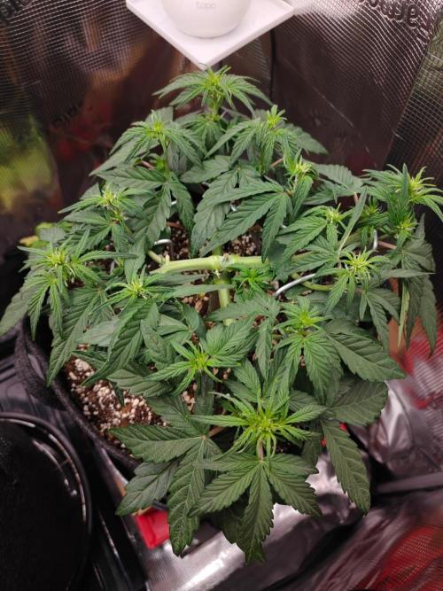 Letting the stretch do it's thing and increased PPFD to 700. The first pistils on the flowering sites are really starting to show now.
