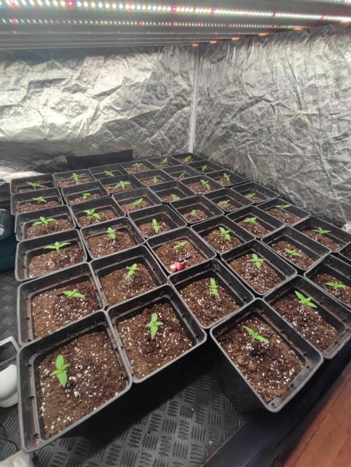 HighHolidays They have been placed in their final 7-liter pots. I left the light a bit higher at first and later lowered it; I’ve kept it at 20% power.
