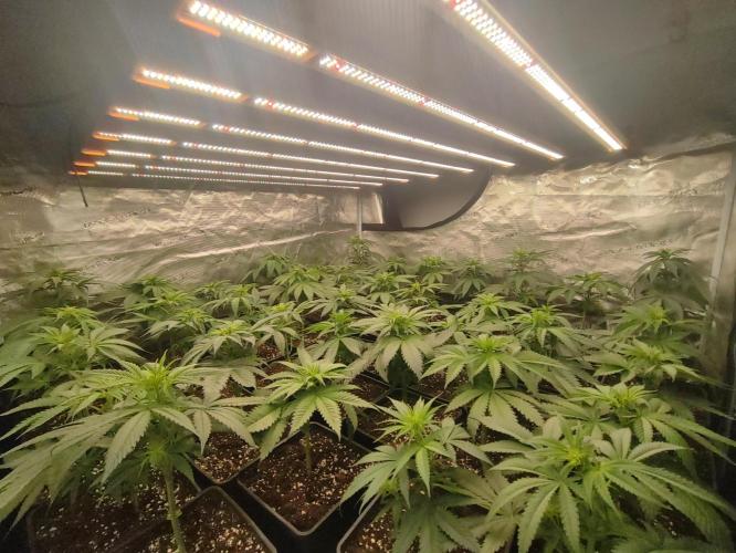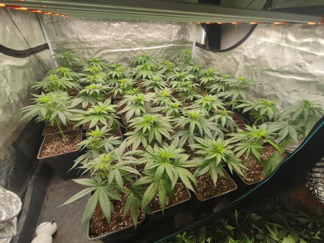 HighHolidays The plants have had a considerable growth spurt, and some roots are starting to show on the surface of the soil. I’ve added Cal-Mag since the soil is low in nutrients and the water in my area has a low EC . I performed a defoliation of the first three nodes. Some of the branches are starting to take on a slight purple hue. I’m switching to a 12/12 light cycle now.