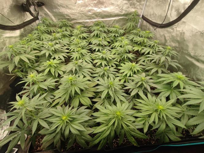 HighHolidays The flowering is starting to become noticeable. At first, all the pistils have developed well. It's clear that the plant is drinking a lot more, although the soil takes a bit longer to dry out, so it stays somewhat damp. I’ll do a leaf pruning, removing one leaf per node.