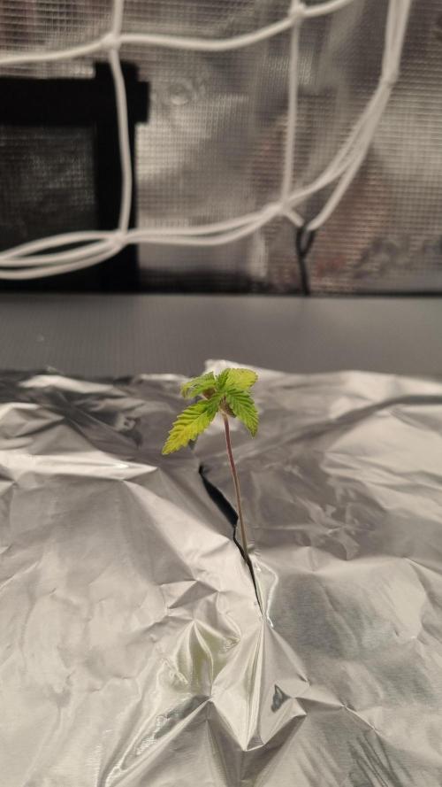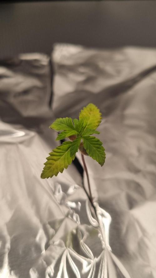 HippyHemulen New round is starting. This had to wait 13 days before transplant to nft because im having troubles with other seeds germinating. Very yellow cause no nutes, wanted to give kinda equal start to everyone. I will start to count veg days when tranplanted on nft.