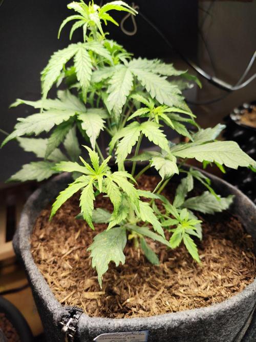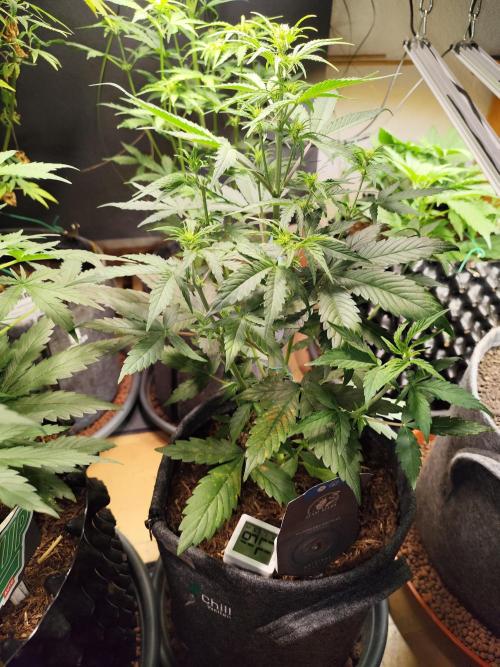 Beide Strains erhalten die gleichen Bedingungen. Beide stehen in einem 9 Liter doppellagigen Stofftopf von ROOTIES (ChillWelten war der Vorgänger der Firma, heute heissen alle ROOTIES), beide haben die Sonnenerde Bio Hanferde und bekommen und später gibt's noch eine Mulchschicht mit Sonnenerde Bio Faser. Beide haben am Anfang eine Bioledex mit 10W im gleichen Abstand.