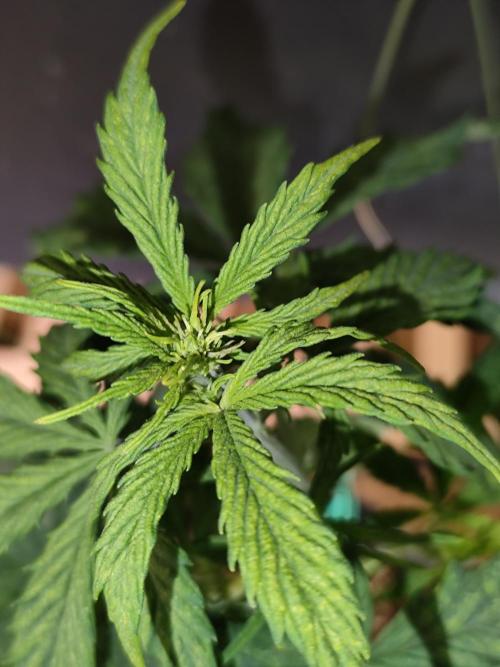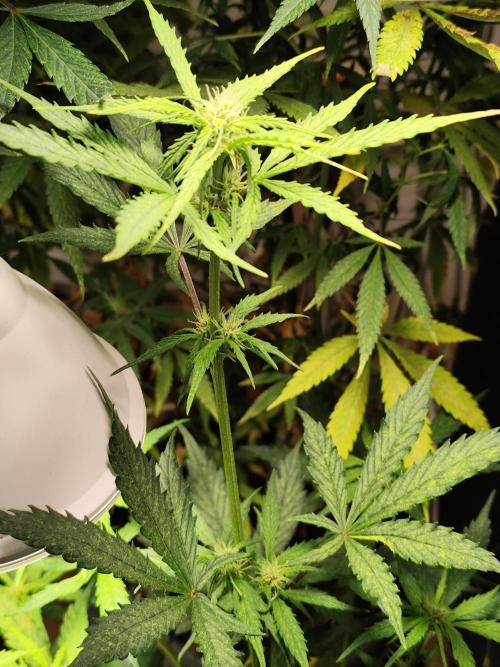 Tag 40: Die Blueberry macht mir Sorgen, die Blattverfärbung und -verformung ist auch an den oberen neuen Blättern zu sehen, dennoch streckt sie sich mehr als die Blueberry Zkittlez.