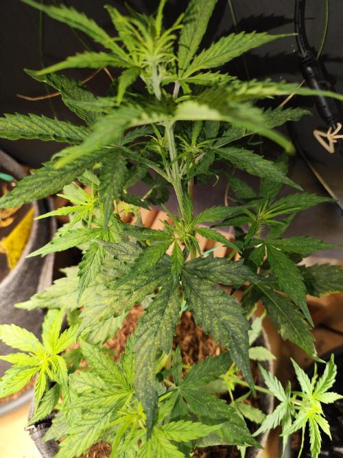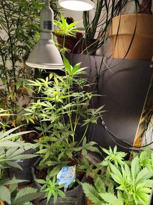 Tag 21: Die Blueberry Auto von Zamnesia Seeds wächst sehr schön, die Seitentriebe sind schon zu sehen. Sorgen machen mir die Flecken auf den Blättern. Sieht aus wie bei einem Tripsebefall, Es sind aber außer Fruchtfliegen keine anderen Insekten weit und breit zu sehen. Die Blueberry Zkittlez wächst eher in die Höhe. Auch hier sind die Seitentriebe sehr schön zu sehen.😎