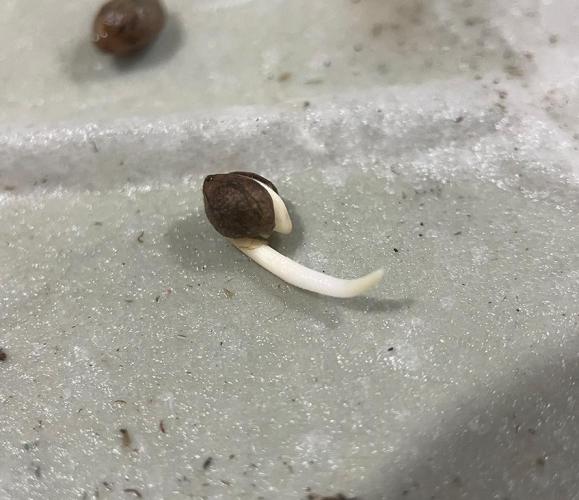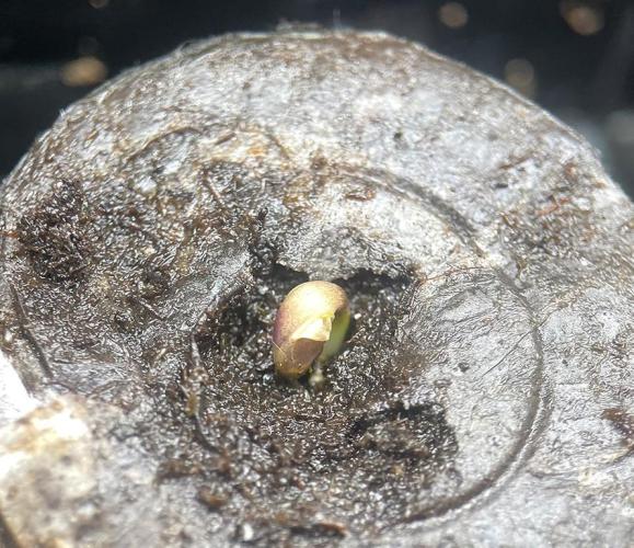 Each cracked bean was placed in an expanded peat puck, inside a small Vivosun germination tent.