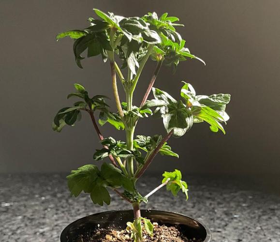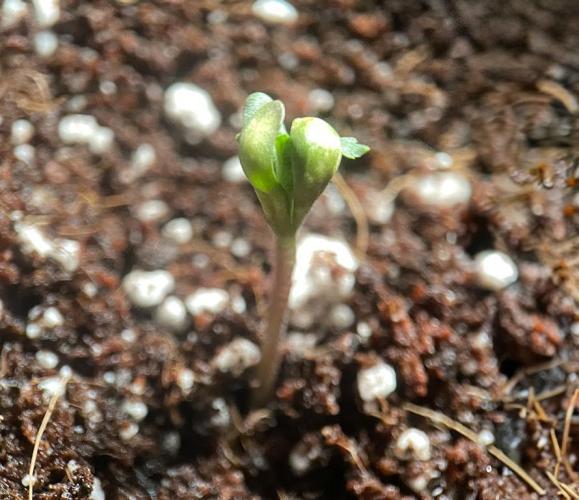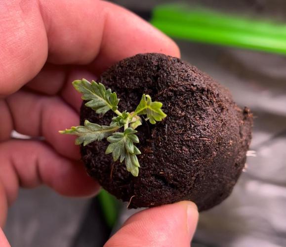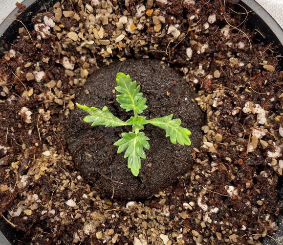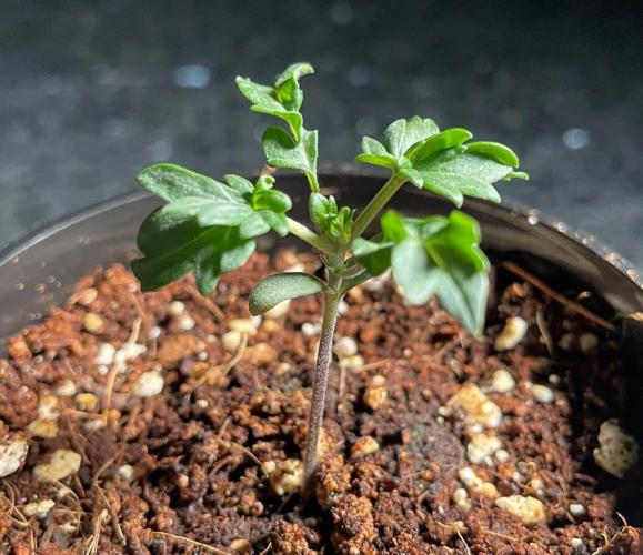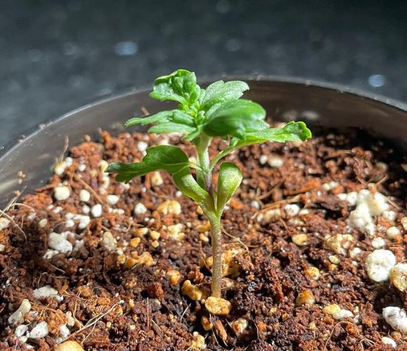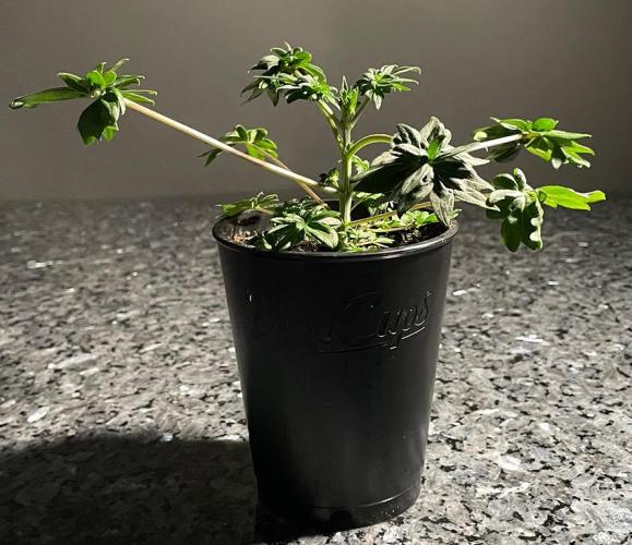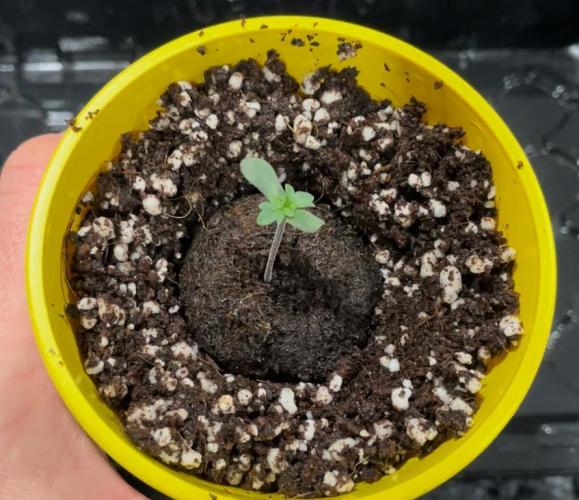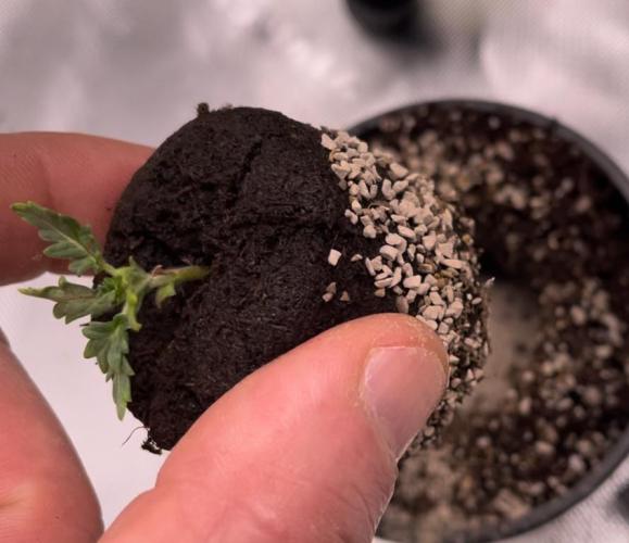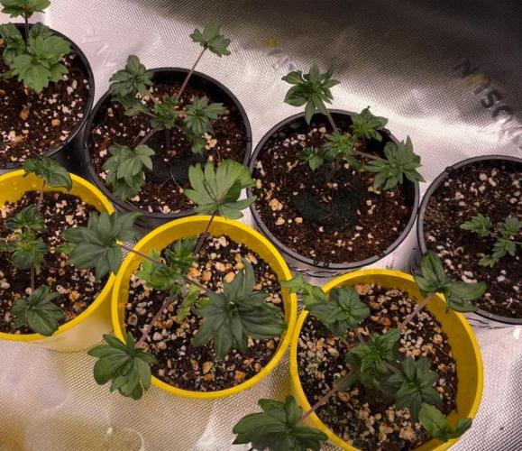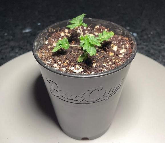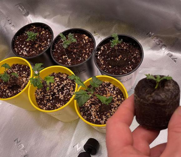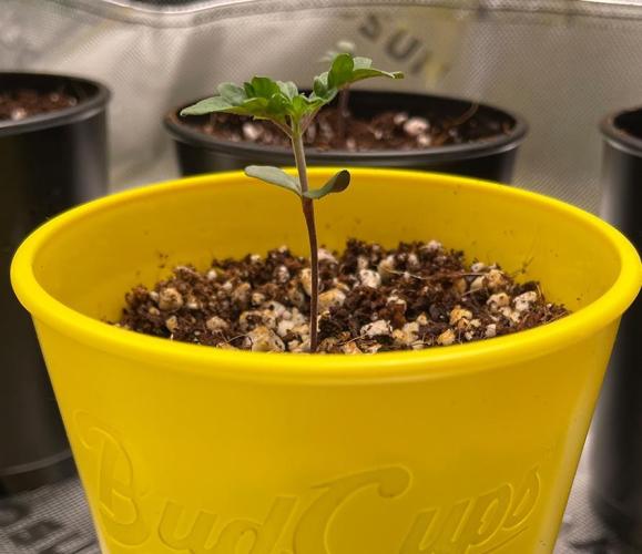 Once each shoot had formed two true leaves, the shoot was transplanted into a 16-ounce Budcup with a mix of 70% coco and 30% perlite.