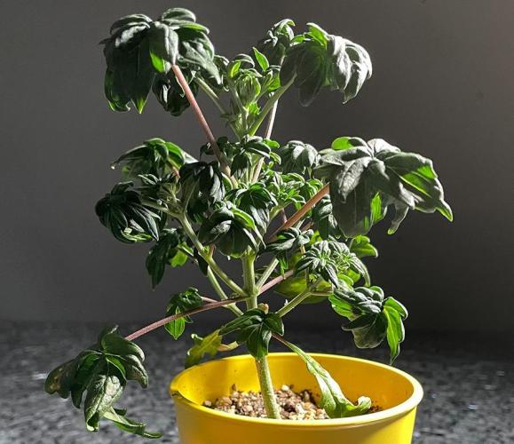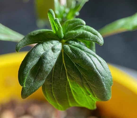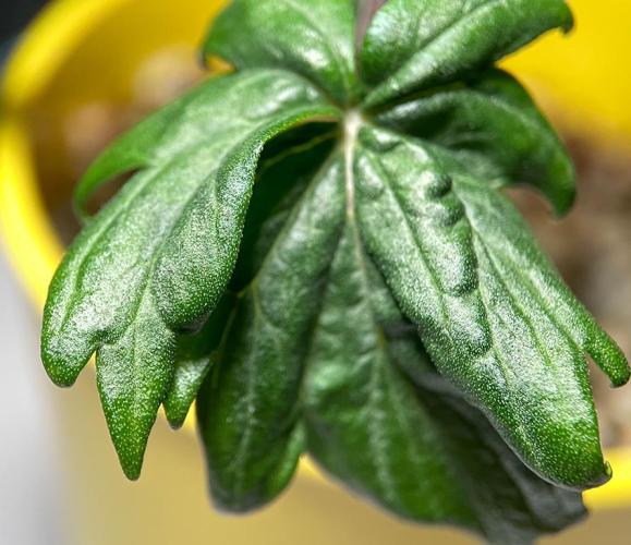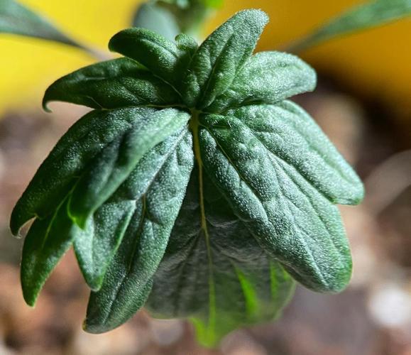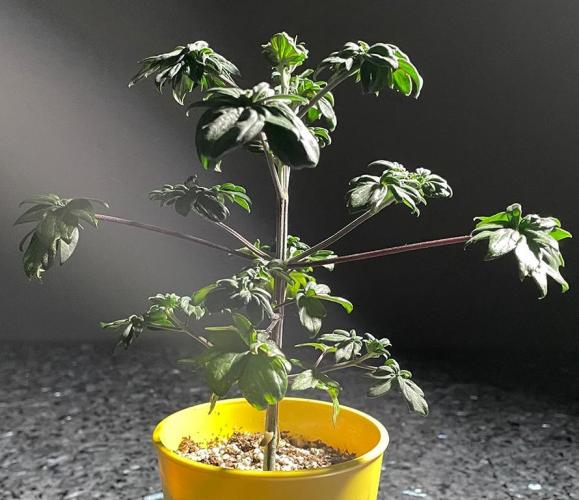 In the second week after transplanting to 16-oz cups, the ABC (Australian Bastard Cannabis) leaves grew larger, and more varied.