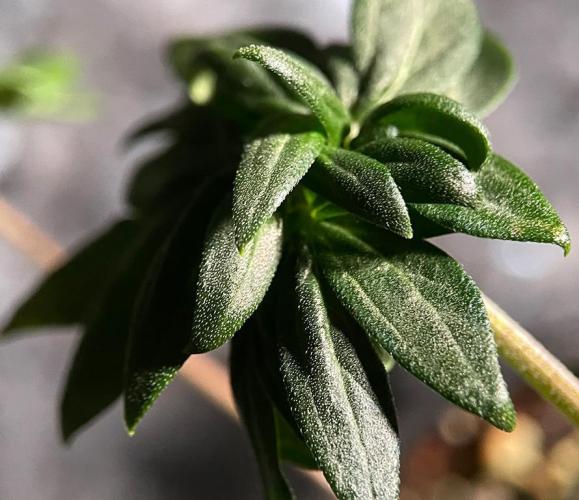 In the third week after transplanting to 16-oz cups, the ABC (Australian Bastard Cannabis) leaves got larger, and the plants started to stretch.