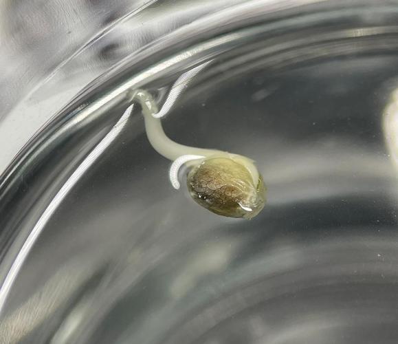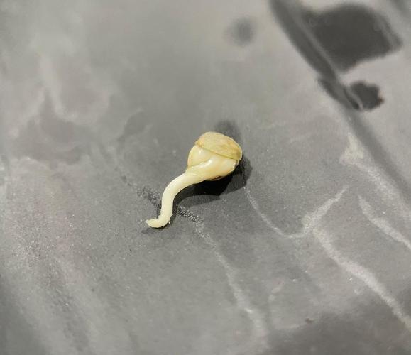 After 72 hours in spring water, the seed had germinated, with about 1 cm tap-root.