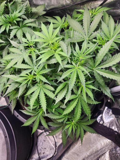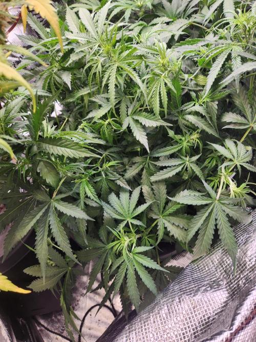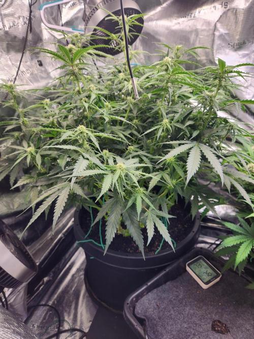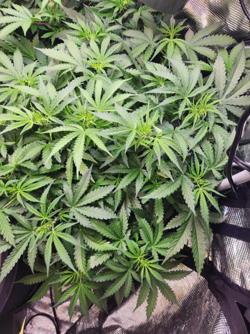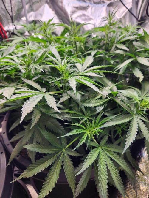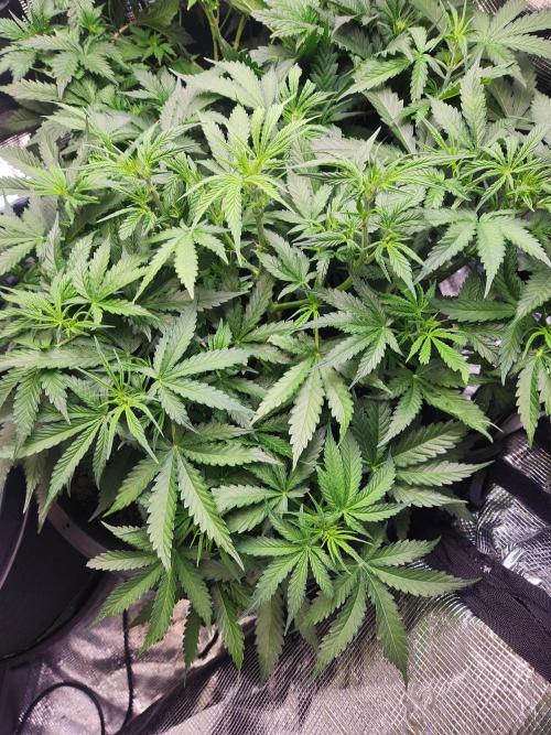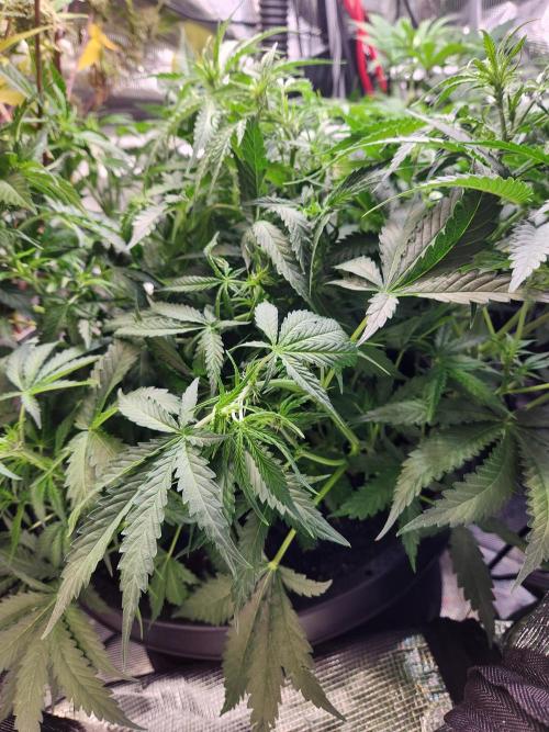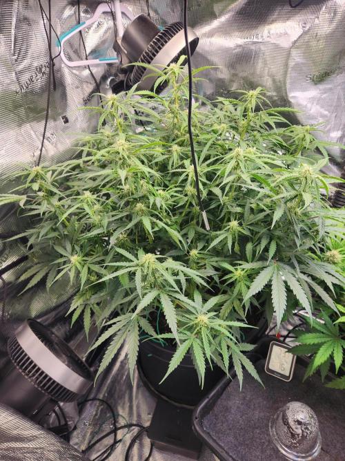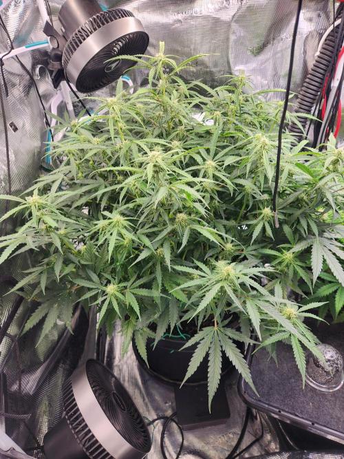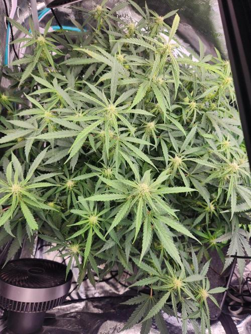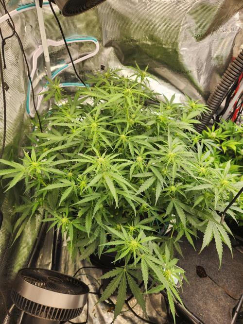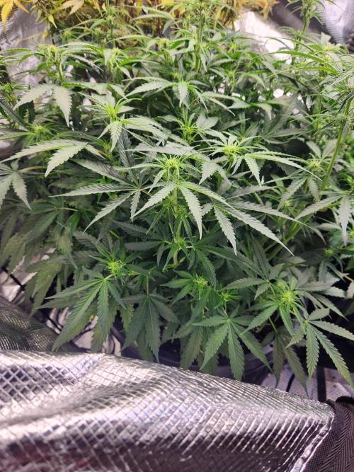 syzergy no complaints, buds are tightening up, stretch has ended and i have plenty of vertical room. ive raised the light a bit, hit with a foliar spray of Mg, add some Mg to rez, just setting into the last weeks of flower.
