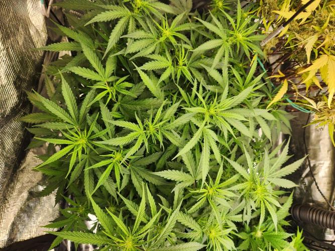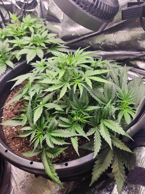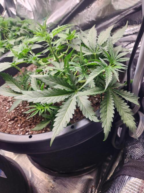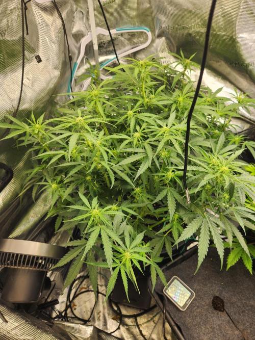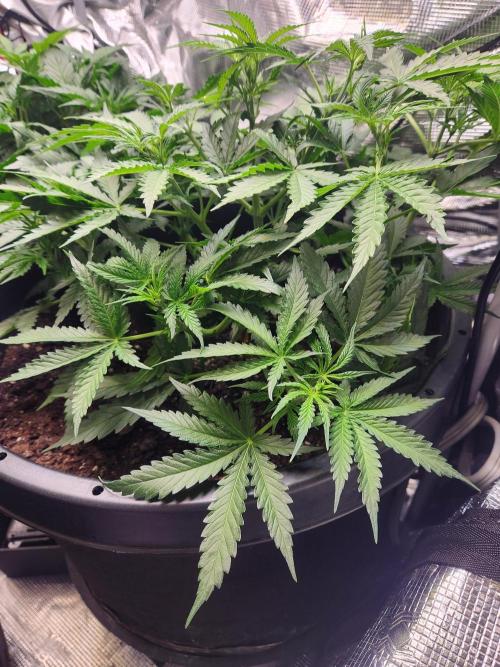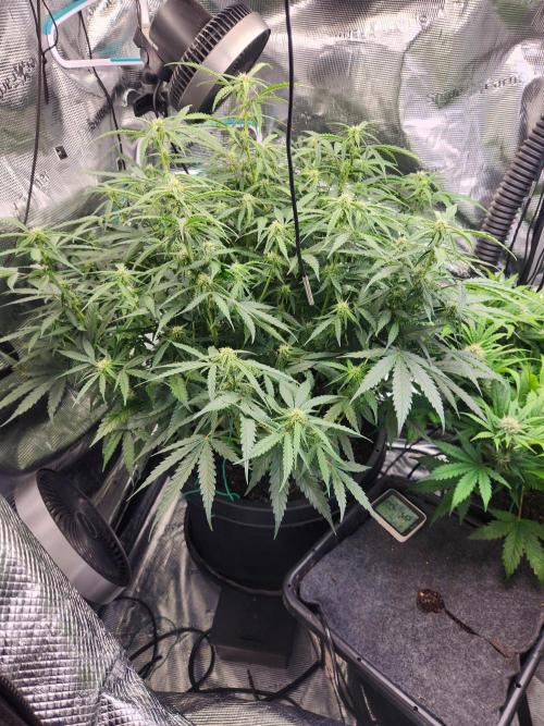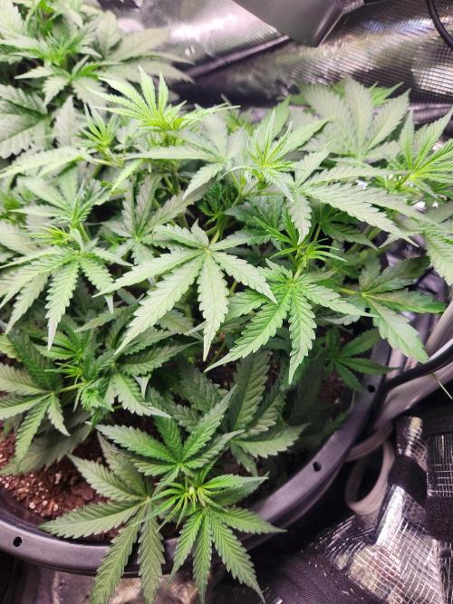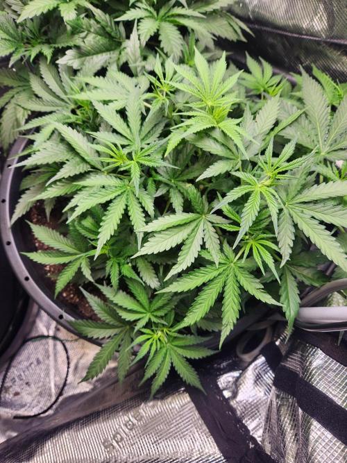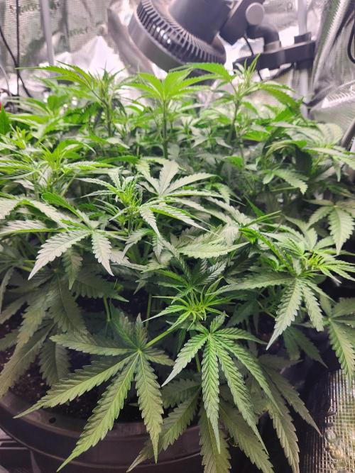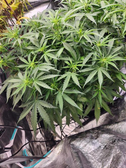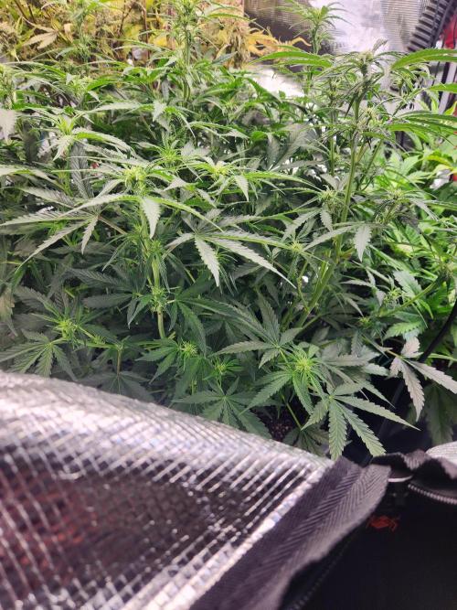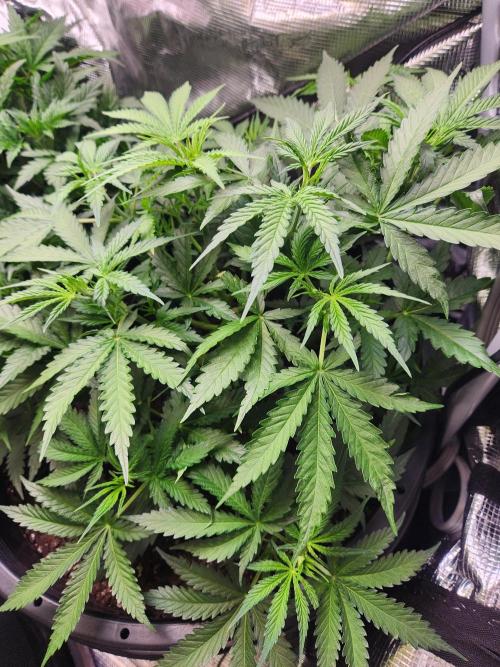 syzergy no complaints, buds are tightening up, stretch has ended and i have plenty of vertical room. ive raised the light a bit, hit with a foliar spray of Mg, add some Mg to rez, just setting into the last weeks of flower.