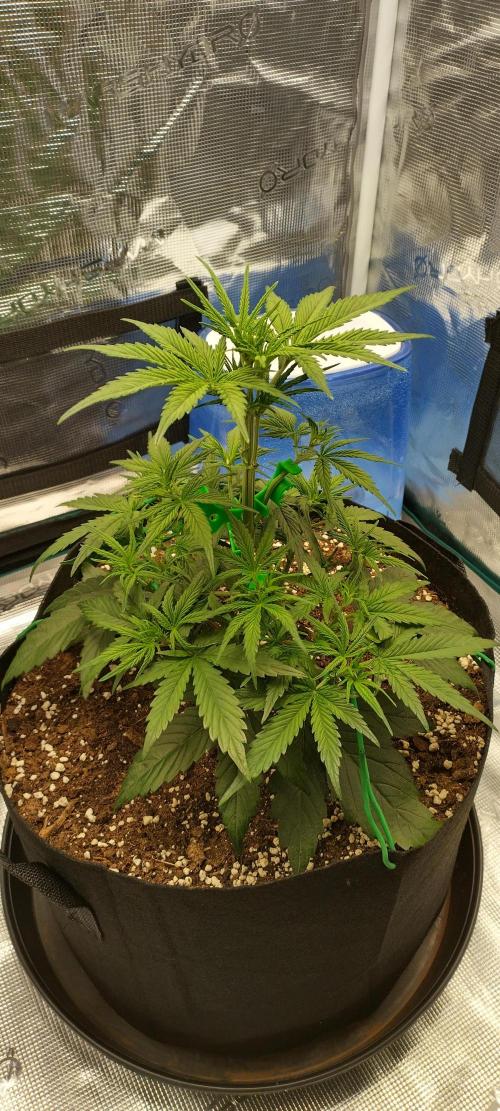 Die Dame wird Ende der Woche blühen. Beim ersten Gießen habe ich mit 2,5 l Wasser (pH 6,2) gespült, musste den Dünger wechseln. Nutze ab sofort Hesi-Mineralien, diese Woche Blüh Complex und Boost.