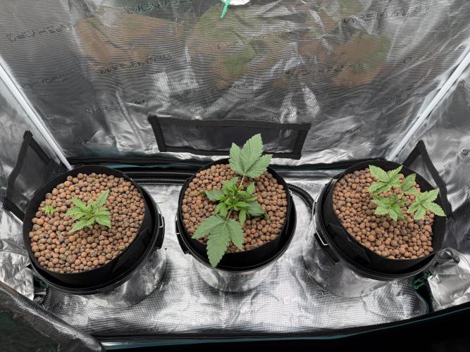 The ladies were defoliated for the first time. One has already been topped.