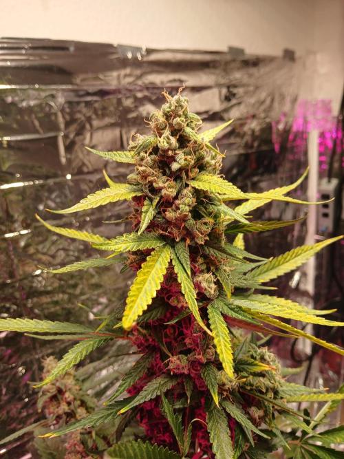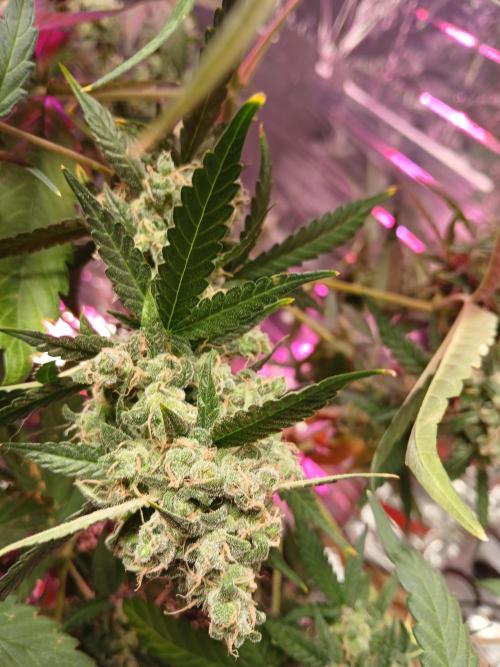 kdifiori_ A week full of surprises, some good, some bad. For the Pineapple, Skunk, and little Gorilla, a whole week of flushing to prepare them for two days of darkness, and then they will be harvested. I started flushing the Cheese at the end of the week, and the Bubblegum continues with nutrients for now. Cheese and Bubblegum are now tied together and continue to bend under the weight of the flowers. Unfortunately, the Skunk's head almost broke, but I managed to recover it. Not long to go now!