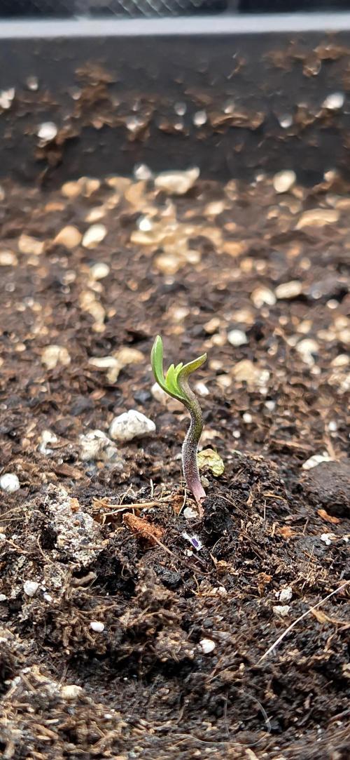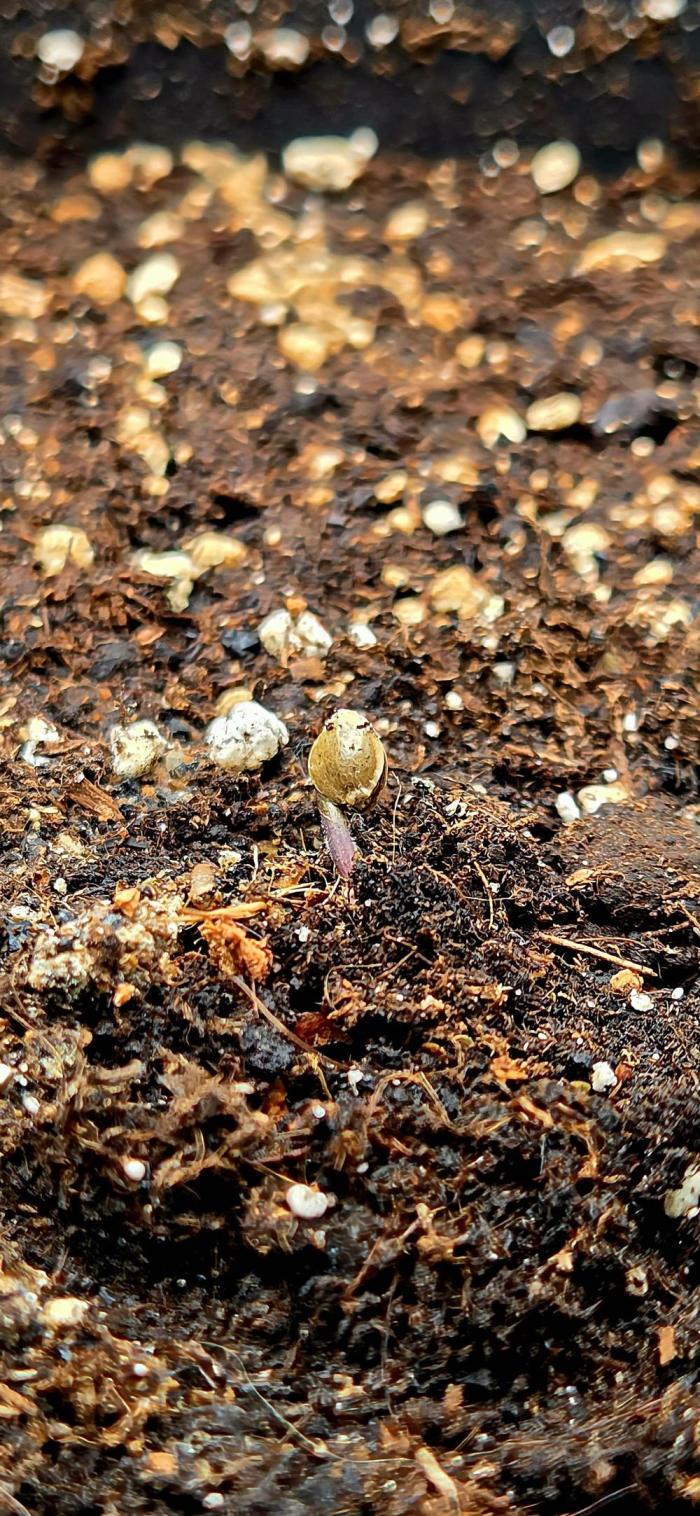Woche 1 verlief ein bißchen spannend... ich glaube die Pflanze fand die Erde ein wenig scharf.