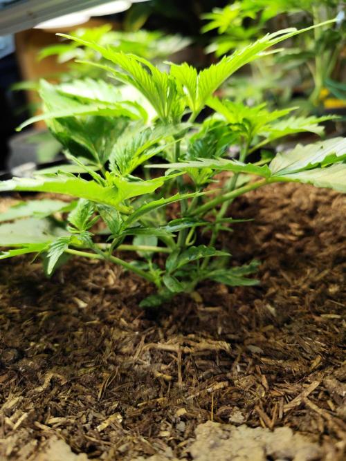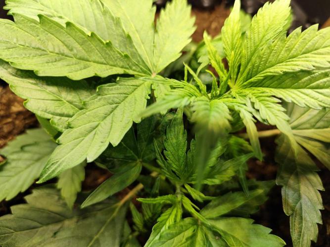 Tag 35: Das frische Laub der Tangerine Dream Auto von Zamnesia Seeds entwickelt sich schön, keinerlei Verkümmerungen zu sehen.
