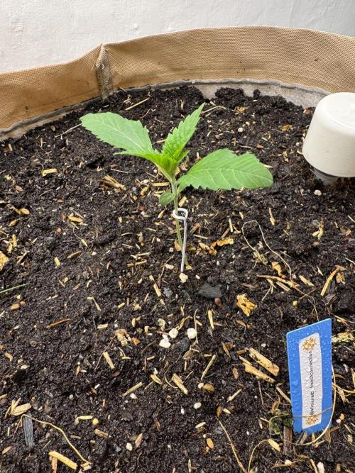 Terp_Djiny Die erste Woche hat die Pflanze gut verlebt, zum Wochenende musste ich eine Stütze anbringen da sie doch umgefallen ist. Ansonsten habe ich die Woche über die Erdoberfläche feucht gehalten und zum Ende der Woche noch die organic helper seeds eingesät.