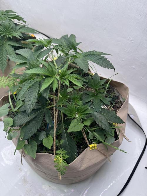 Terp_Djiny Seile spannen und etwas beschneiden stand diese Woche zweimal für die Pflanze auf dem Plan. Gegossen wurde nur mit Wasser um die Erdfeuchte bei 70-80mbar zu halten. Das Cover Crop wächst auch fröhlich vor sich hin.