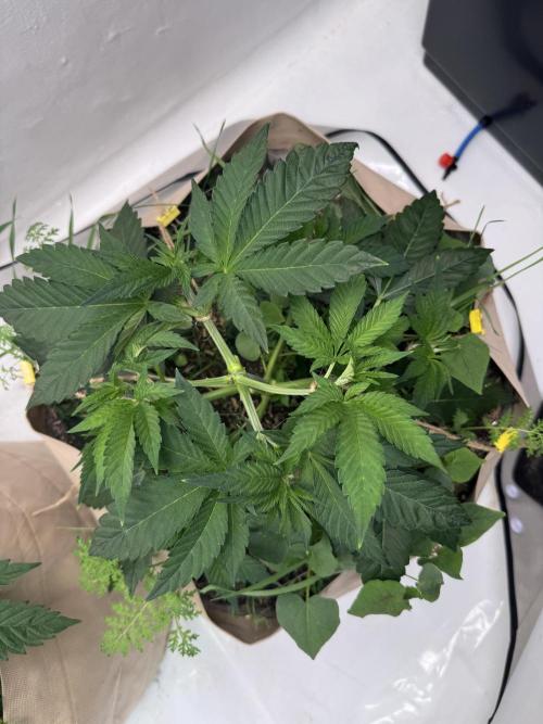Terp_Djiny Die kleine schlägt sich ganz gut, die Stütze hab och stehen lassen auch wenn die Pflanze sich jetzt selbst trägt. Zum Ende der Woche habe ich dass getoppt. Die Erdfeuchte halte ich bei ca. 60-70mbar.