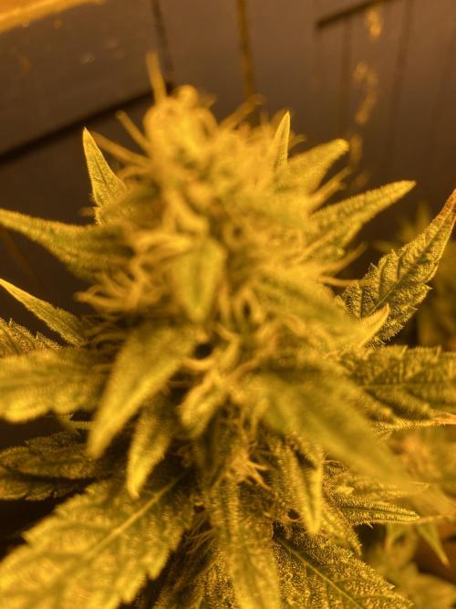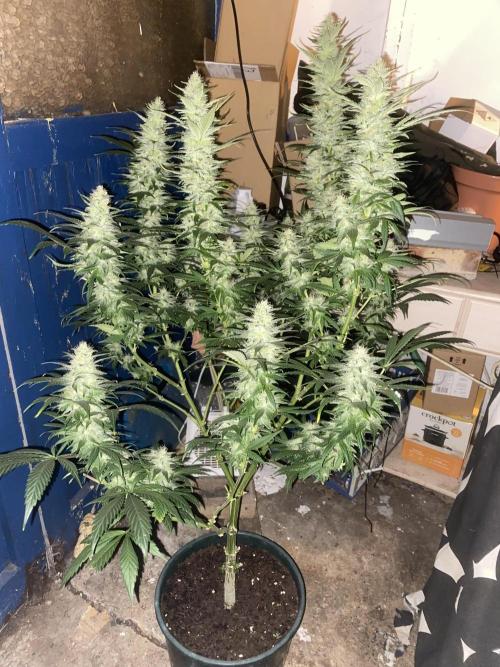 barbus Let this just veg for 4 months while growing autos outside. Amazing summer in uk this year. got bugged out but she recovered. So put it inside to flower She's doing well A bit top heavy Might need to support her. Topped it and topped it again Been on tomato food now on p k 9 18. Doing great and smells delicious!!!