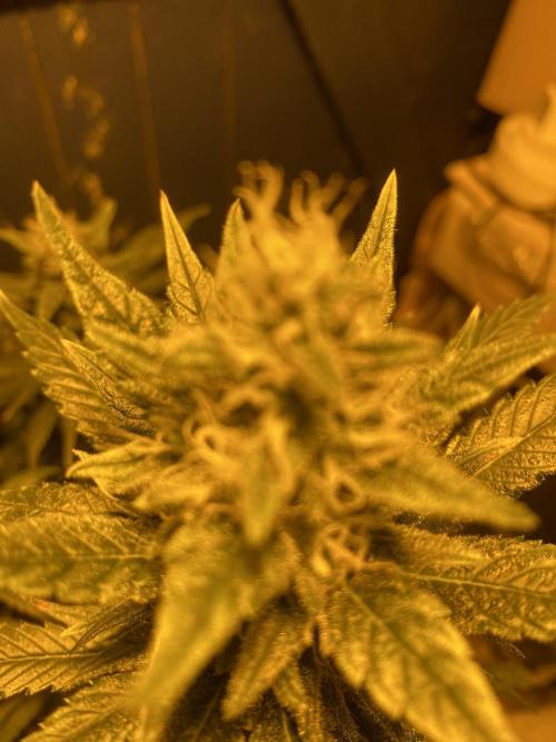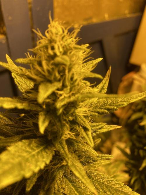 barbus Looking good. Think the cooler temperatures are helping her produce more Trichomes. Probably let her chill now. Maybe no more water. She sucking up the last nitrogen. Should I still flush?
