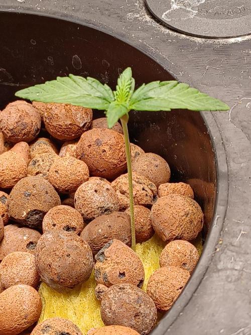 Roberts Hulk Baner has sprouted, and is doing good. I flush her Rock wool with the solution once a day until the roots get into it. She is nice and green. Hopefully not too much. She is starting to grow and make progress. Everything is looking great. Thank you, Medic Grow, Hon&Guan, and Ganja Farmer. 🤜🏻🤛🏻🌱🌱🌱