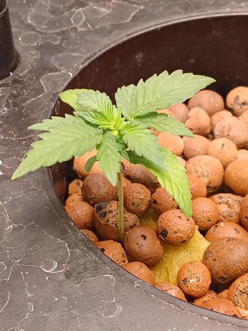 Roberts Hulk Baner has sprouted, and is doing good. I flush her Rock wool with the solution once a day until the roots get into it. She is nice and green. Hopefully not too much. She is starting to grow and make progress. Everything is looking great. Thank you, Medic Grow, Hon&Guan, and Ganja Farmer. 🤜🏻🤛🏻🌱🌱🌱
