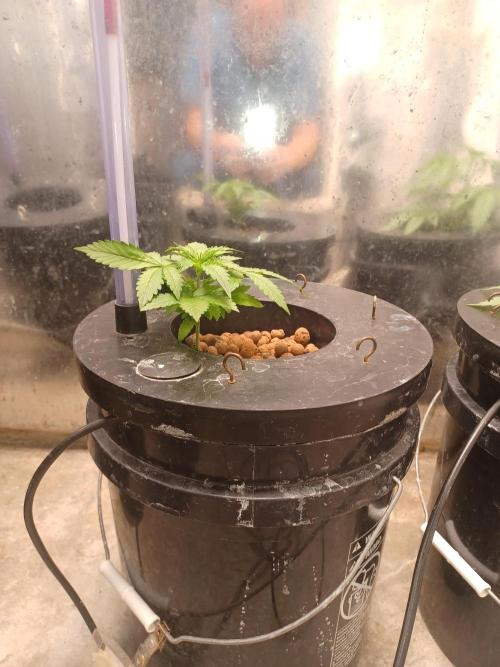 Roberts Hulk banner auto is growing and looking good beside the roots have not found the solution yet. Hopefully soon. Daily watering her rock wool is kinda a pain. She is growing and looking healthy. Thank you Ganja Farmer, and Medic Grow. 🤜🏻🤛🏻🌱🌱🌱