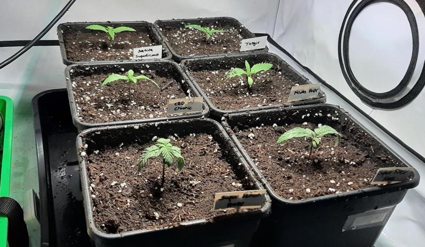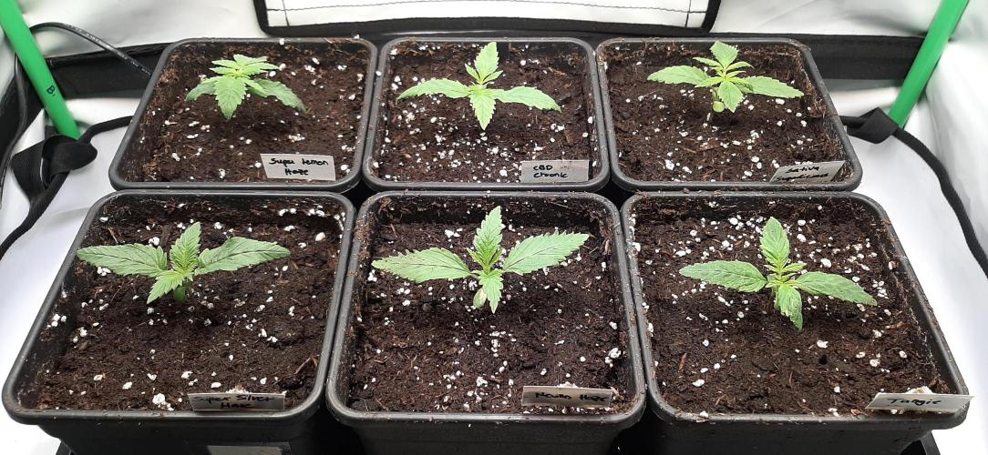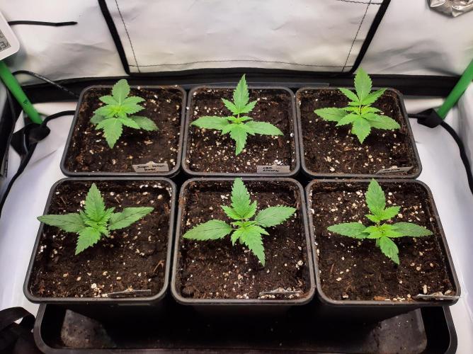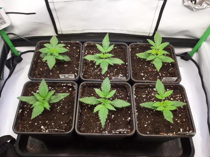 BOTAN1ST We should have repotted them a bit earlier. Due to the delayed repotting, they are now a bit smaller than they should have been. But they will catch up on that :) The light cycle has been changed to 12/12 so the plants stay small since they will bloom a bit longer. It's a test, especially the Nevill's Haze, which has a 16-week flowering period, shouldn't get too huge. We're curious to see how it turns out.