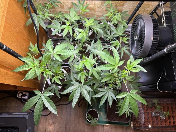 Today I transplanted all of the plants into their final 1 gallon pots with pure canna coco media and using canna nutes. I added a BluMat drip ring and carrot to each pot after I finished transplanting and watering so they’re ready to hook up to a reservoir once they get moved to the tent. I will move them to the tent next week and flip the lights to 12-12 immediately before they can get bigger. This may be an adventure.