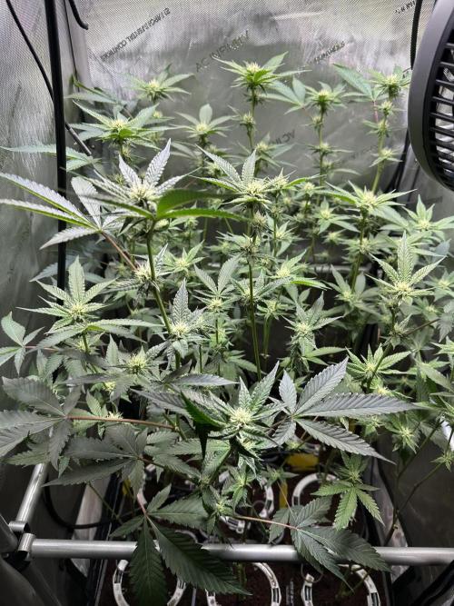 heis0070 First week of flower down. Humidity in the tent has been running higher than I’m used to, but between the 9 plants plus (relatively) tons of exposed dirt, that’s to be expected.
