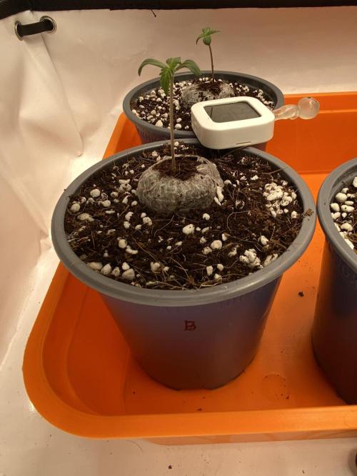 9:40 tutti e 3 i jiffy sono stati messi in vasi da circa 1-1,5l [70% canna coco professional plus (arriva pre-buffered)+ 30% perlite], lasciandoli circa 1cm fuori dal terreno per far respirare le radici;