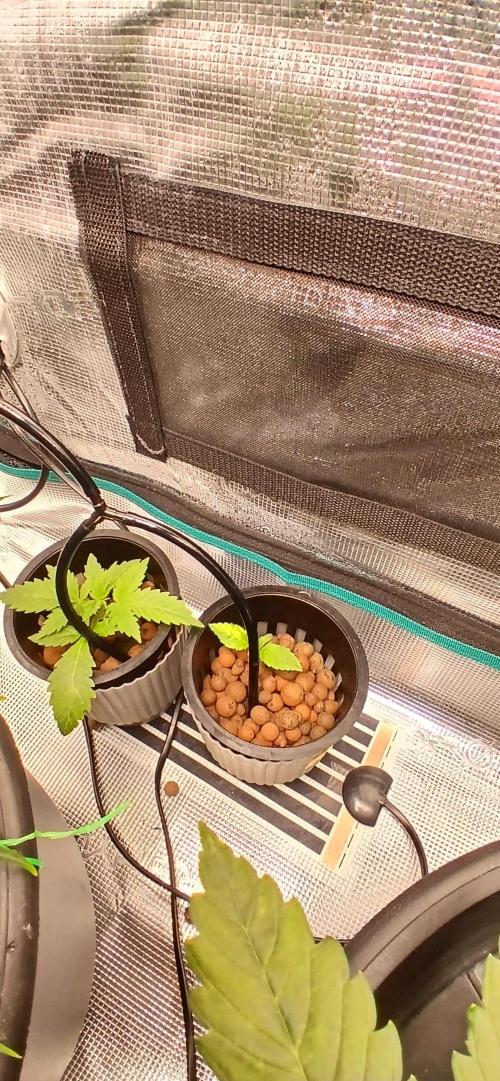 These I have not been giving any attention. I just left them and top them up when needed. However there was one occasion where I left the blue cheese by Expert Seed for too long. Because it was the biggest plant it drank all the nutrient solution fast. I have decided to put them back into the big container as my previous set up. I was trying to use smaller containers to save on water and nutrient solution. We will see if she recovers.