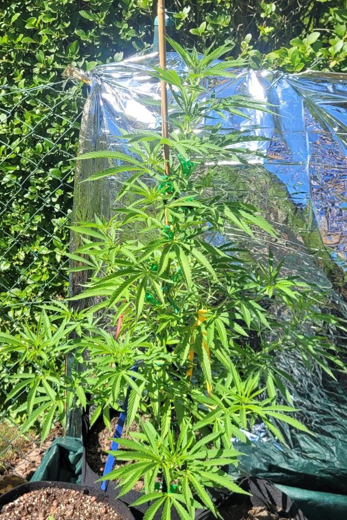 Removed the rescue blanket. Was very dazzling with sun and very noisy with wind ... and disco with both. As I sobered up I roughly calculated that I won't improve my harvest from ~40g to 1 kilo .. so no reason to keep it.