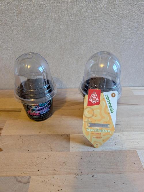 I used FloraGard Professional Light Mix, sowed, and put a few drops of water over it. Getting about 150 PPFD for 18 hours.