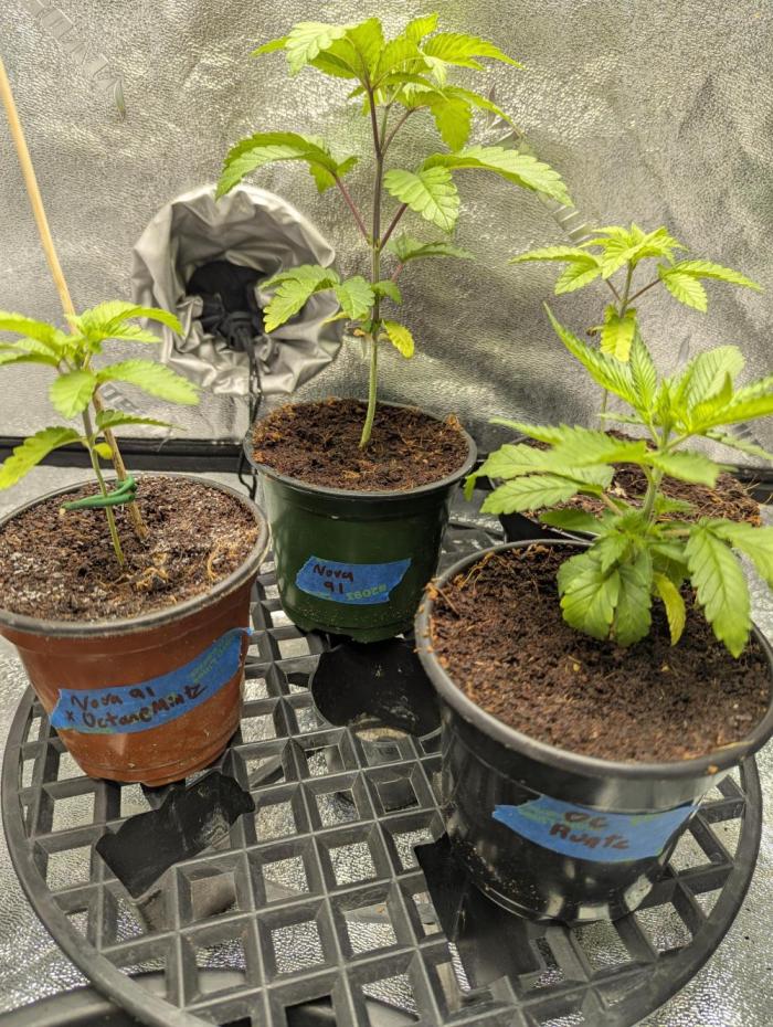Week 1 of flower. Nova 91 on far right needed a touch more N. Supplemented with extra N thru Alaskan fish emulsion.