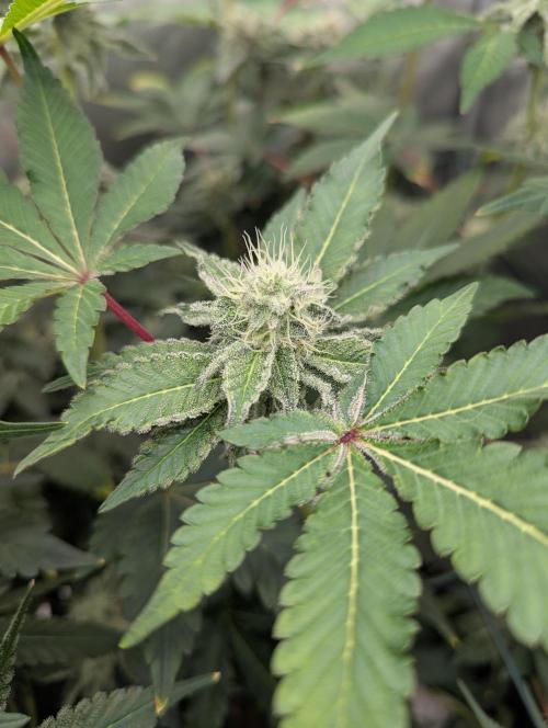 Heavy trichome production early into flower.