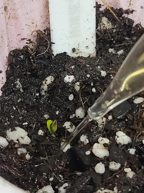 Sapphire9352 Germination began with 400 grit sandpaper lightly brushing the seem of the seeds. They were placed in water until they sank, and then into a oaper towel. Germination was performed at 79°f/26.1°c. 18 hours later when checked, the taproots were extended from the seed shells. They were planted at 36 hours into my custom substrate mixture. I utilized coir husk over the tops of the germinated seeds once placed into the substrate. This was performed to ensure the necessary VPD was maintained consistently throughout the germination process.