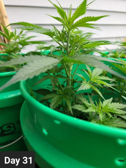 Day 31: The plants are halfway through the day and have uniformly added 2.5 inches. I'll measure again tomorrow, but as of 10 hours into a 20 hour cycle, this plant is already at 19.5".