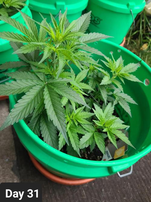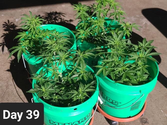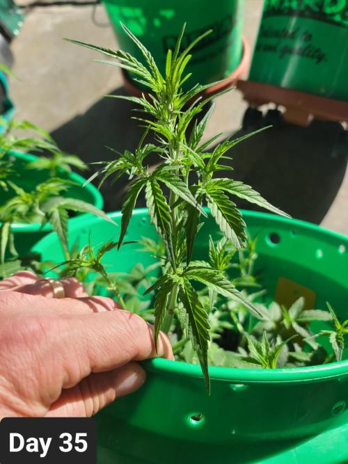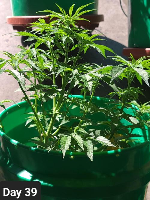 Day 36: Plants are between 21.5"-24". They may continue to stretch, but as of now it appears Zamnesia is on the money with overall height. Pistils are really beginning to show up, and the plant is beginning to look like an early flower female. My nutrients and lighting have been adjusted accordingly. Happy roots, happy plant!! I switched from 20/4 to 12/12 from here until the end. Also, i run by DLI for autoflowers. As long as you track DLI properly, its all the same whether 12/12 or 24/0 with autos. I opted for 12/12 this time around, but I've done many different lighting schedules with autos over the course of time. DLI, DLI, DLI. Nothing else matters with autos, that's one of their greatest strengths!! In this case, I'm nailing them with high DLI for a day and will give them a little break tomorrow.