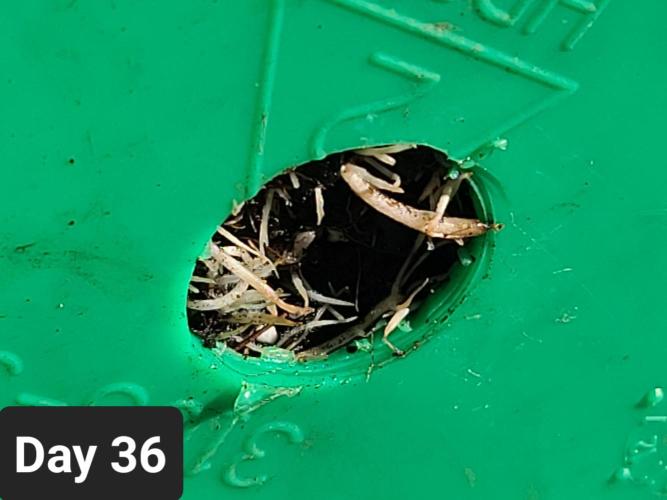 3. Foliage and Roots grow, new roots develop on the stem which was submerged, and the grow medium is permeated with roots at an exponentially increased rate compared to plants grown rooted using the Standard method.