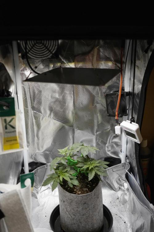 ZackOne The plant is growing slowly but healthily. I'm having problems with high temperatures and low humidity. So I decided to set the air filter to maximum and hang a wet towel in the box.