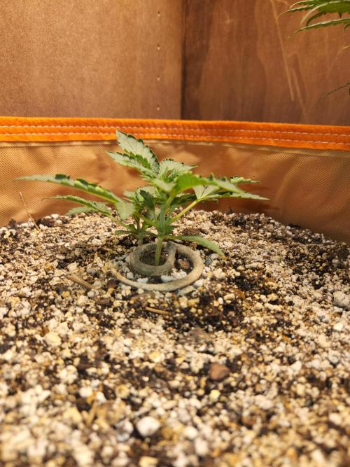 Soaked for 24 hours in 4 oz water with 1 ml BioAg FulHum-L, then placed in a rockwool cube directly into substrate