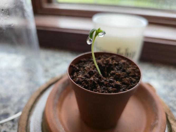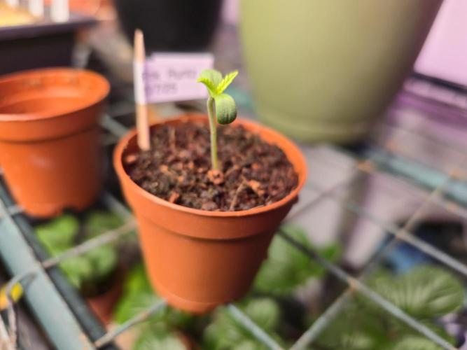 CalicoCatMom This was planted on 10.7.25, germinated on 10.10.25, and then transferred to the greenhouse on 10.12.25. I sowed the seed directly into damp coco coir. I placed the mini pot under a glass dome on my kitchen counter in front of a south facing window. It's a lot of fun to watch these seeds sprout as I make my morning coffee.