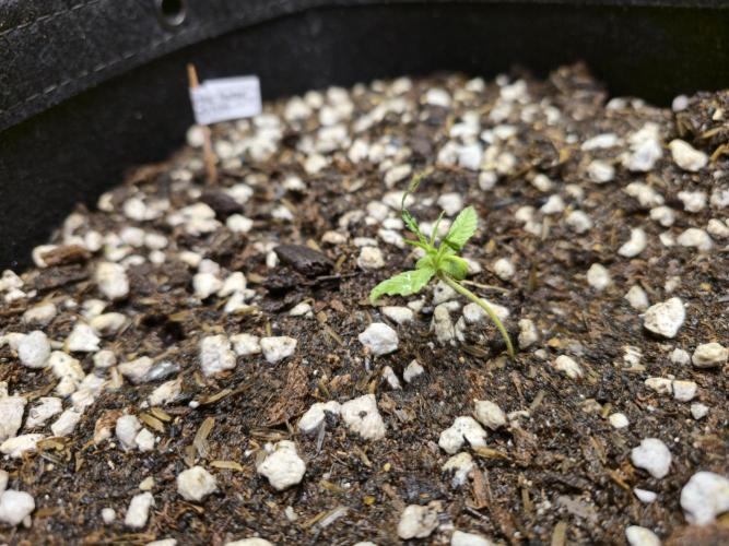 CalicoCatMom My little Pink Runtz has had a rough go. It's been stunted for a couple weeks but it's pushing out new leaves. I'm hoping this catches up to the other grow soon. Still about 2" tall, 48" from the light and PPFD of 250. Not a lot else going on in the greenhouse. Spent some time taking care of a spider mite issue with the hydroponic strawberries. Apparently the spidermites are loving those plants specifically despite my best efforts of keeping up with them. I wiped down a bunch of plants to be sure. I don't want mites on my cannabis, so this will be something I'll need to keep a close eye on.
